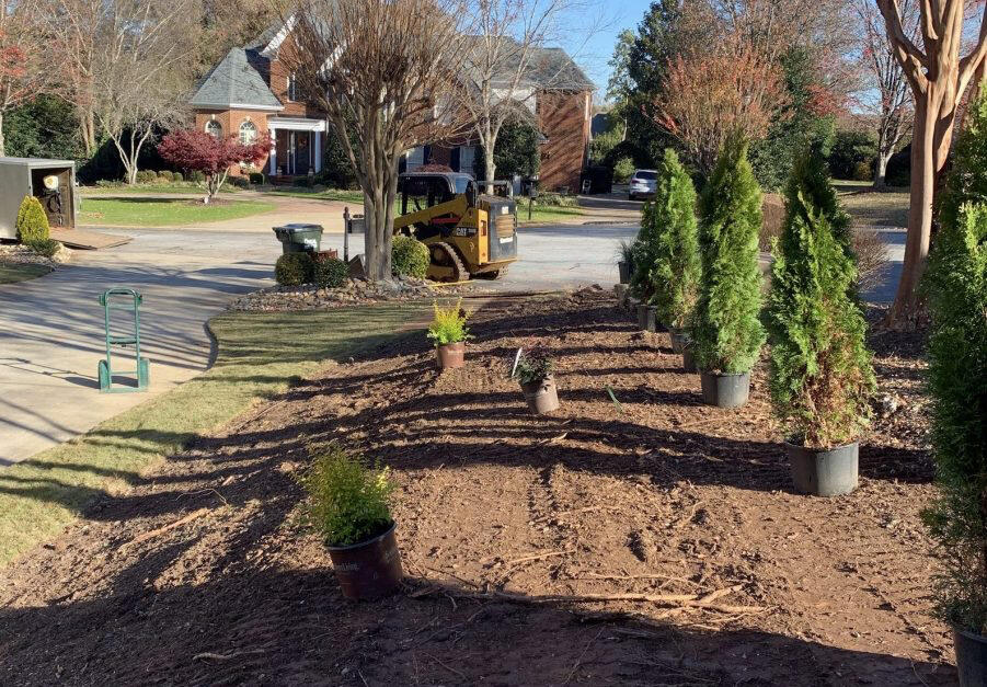 Mulch, weeds, flower beds, trees etc.